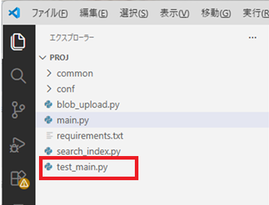 main.pyと同じフォルダ内に、テストコードtest_main.pyが作成されました。