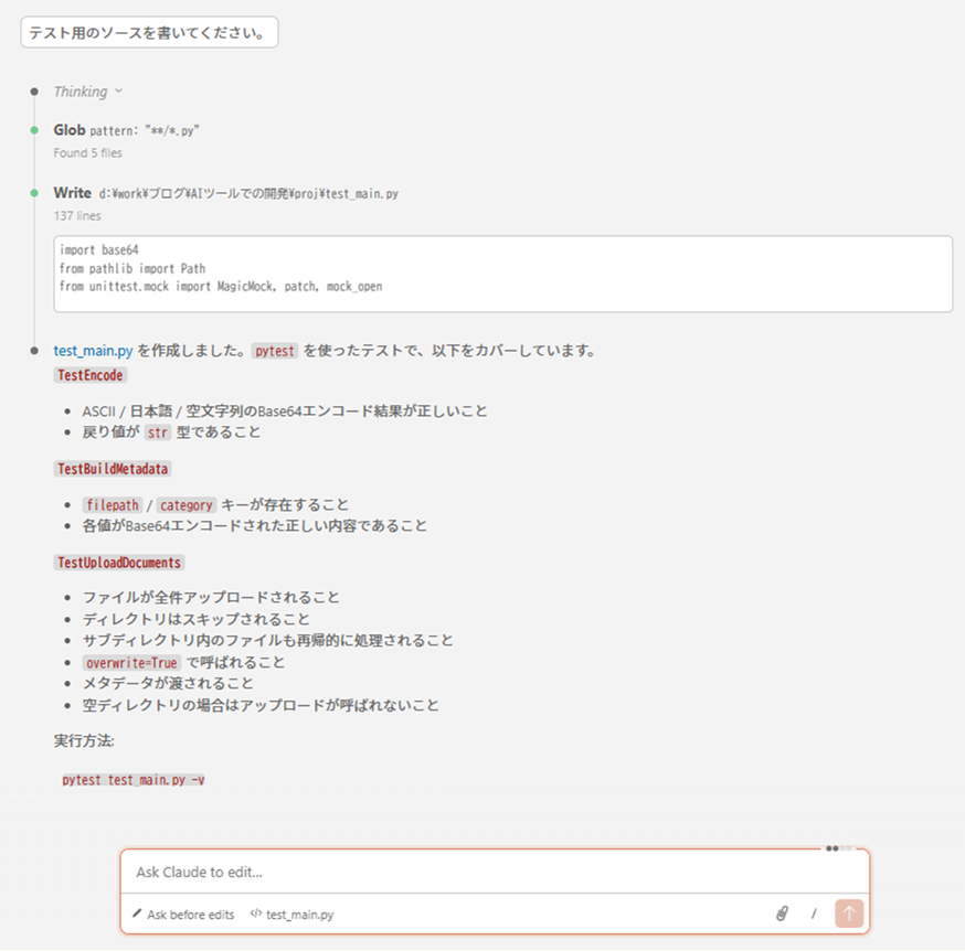 sys.exit(main())テストコードの作成