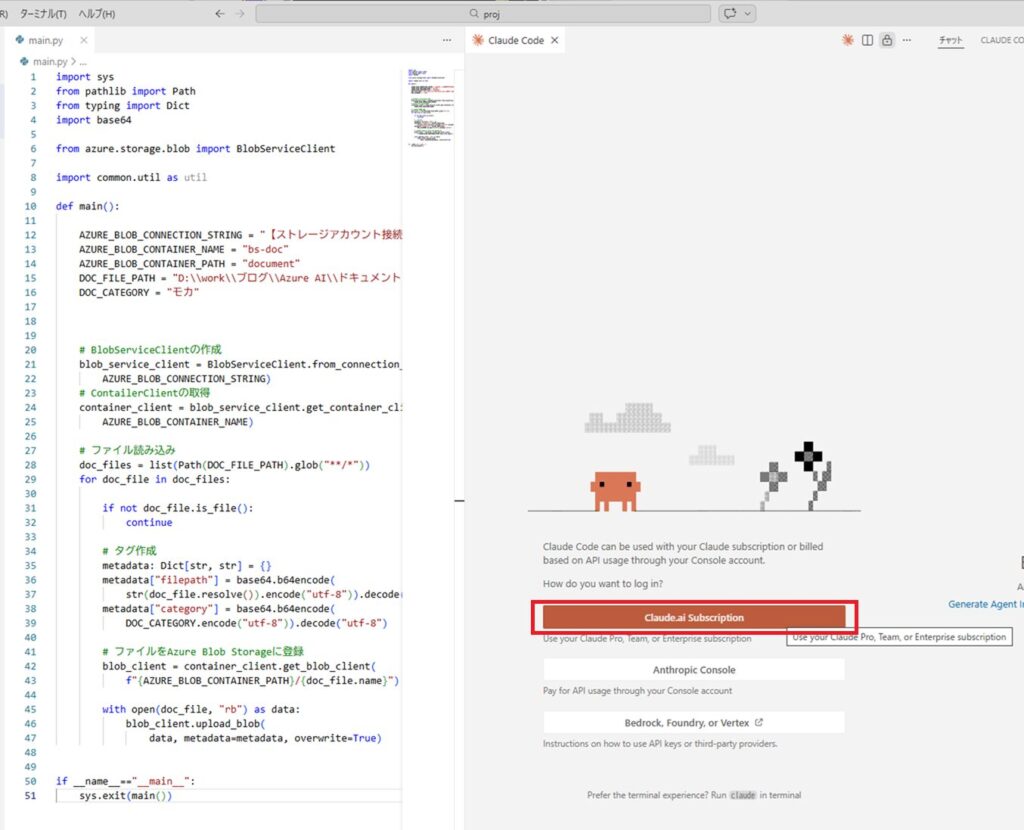 表示されたビューで[Claude.ai Subscription]ボタンをクリックします。