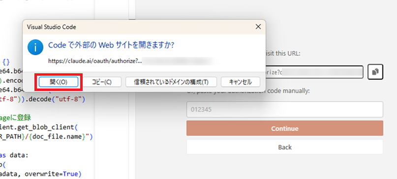 外部のWebサイトを開く確認ダイアログが表示されるので、[開く]ボタンをクリックします。