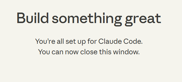 ブラウザに以下のようなセットアップ完了のメッセージが表示されるので、ブラウザを閉じます。