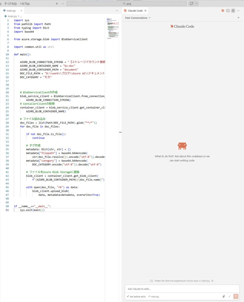 AZURE_BLOB_CONTAINER_PATH = "document" # コンテナ内のアップロード先パス