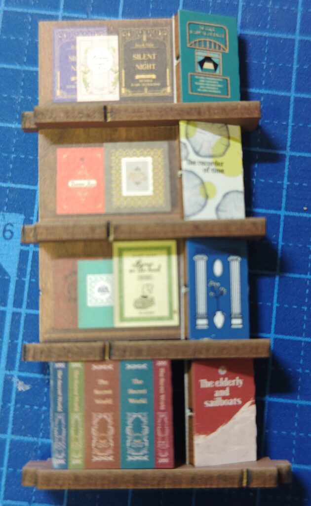 本棚に収まるサイズの箱の中に、街並みや庭、部屋などを再現したミニチュア空間を作るもので、主に木材などの素材が使われています。