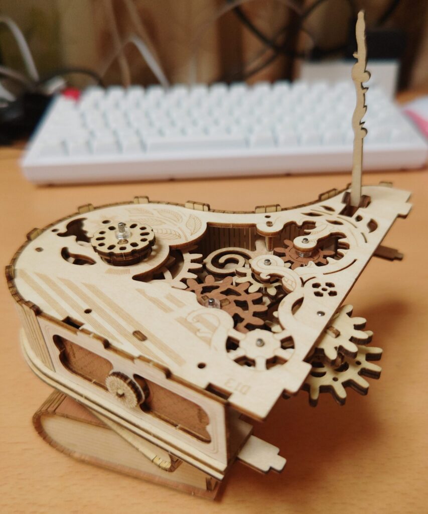 完成後にオルゴールを回して、歯車が動く様子を眺めるのが本当に楽しいです。