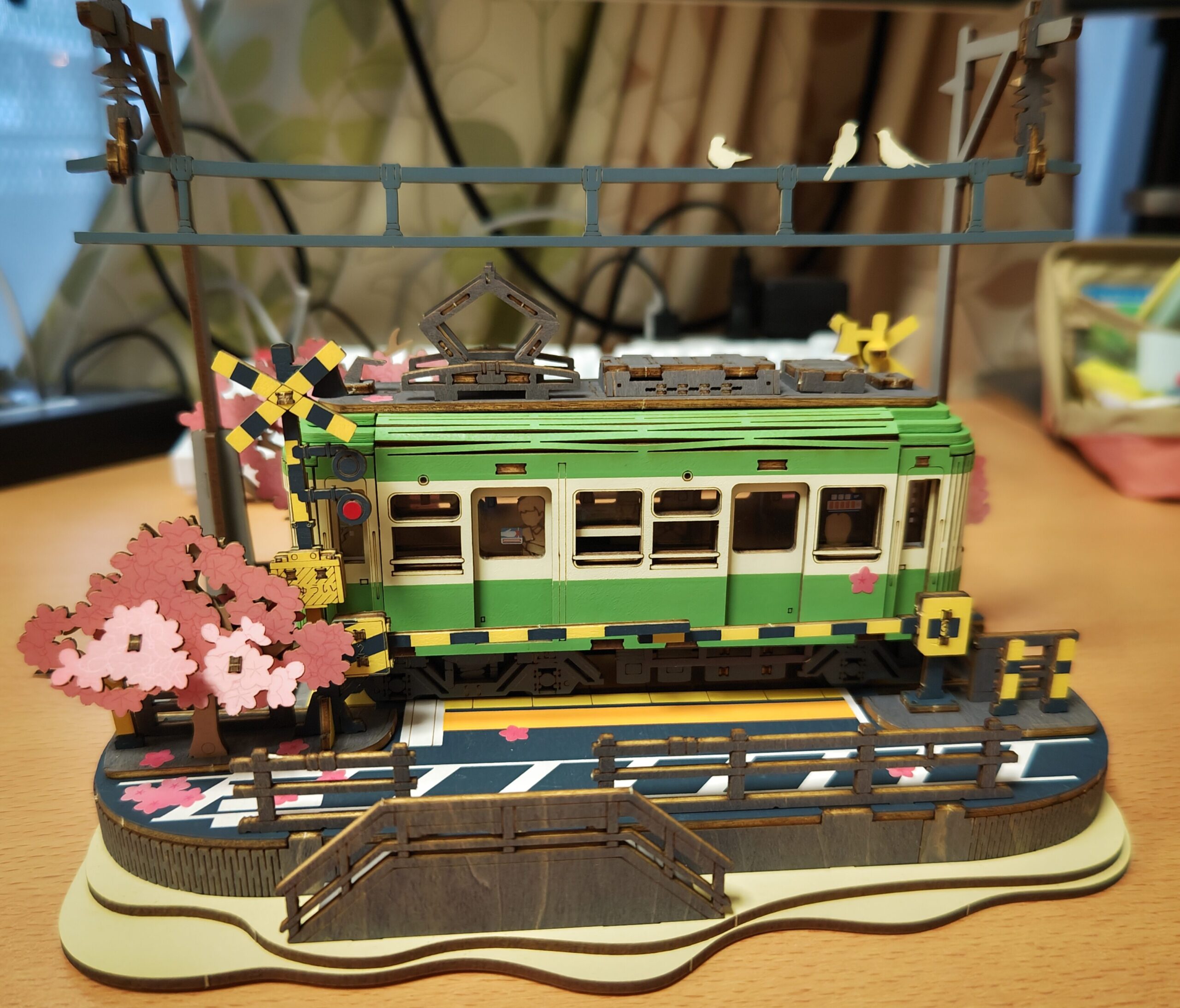色付けもあらかじめ施されており、桜のシールや車内の窓部分にはビニール(もしくはプラスチック)のパーツを取り付けられるようになっています。 - 車内に電気が付けられる
